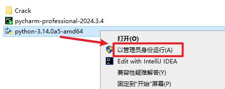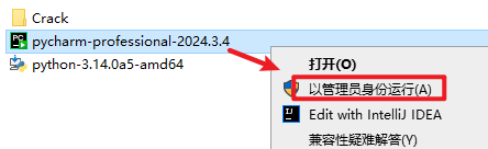 8.返回安装文件夹,选中“pycharm-professional-2024.3.4”右键选择“以管理员身份运行”