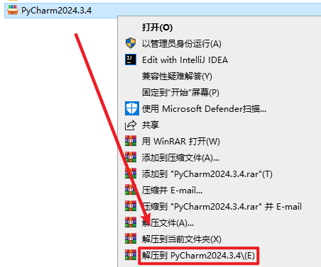 1.选中下载的压缩包,然后右键选择 “解压到 PyCharm2024.3.4