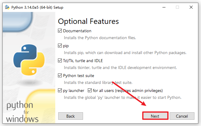 2.打开刚刚解压的文件夹,选中“python-3.14.0a5-amd64”右键选择“以管理员身份运行”