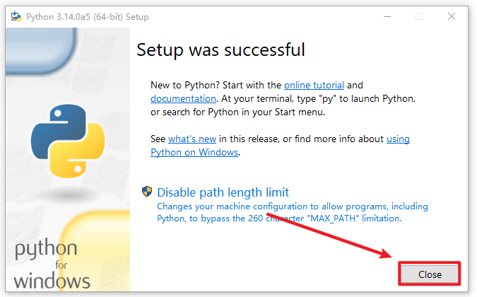 7.安装完成后,点击”Close”