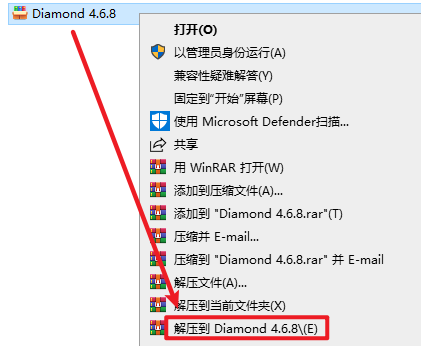 1.选中下载好的安装包,右键选择“解压到 Diamond 4.6.8”