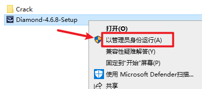 2.打开解压好的文件夹,选中“Diamond-4.6.8-Setuo”,右键选择“以管理员身份运行”