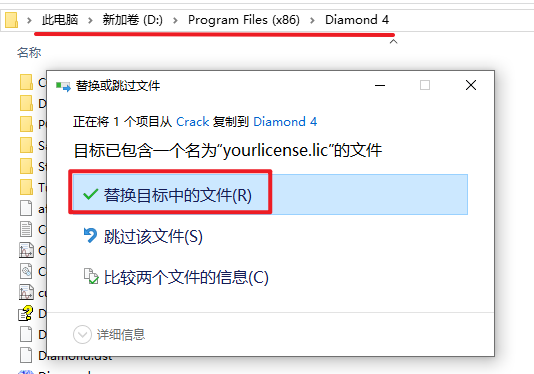 12.粘贴复制的文件到该路径下,选择“替换目标中的文件”