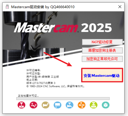 温馨提示:若打开没有许可证,请重启电脑,再返回Crack文件夹运行“ Mastercam 许可证驱动”文件,点击“加密狗正常却无许可“即可