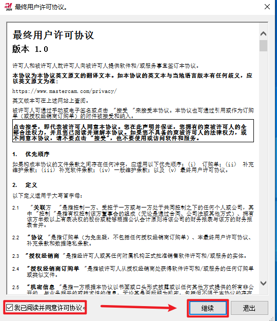 16.勾选“我已阅读…”,点击”继续“