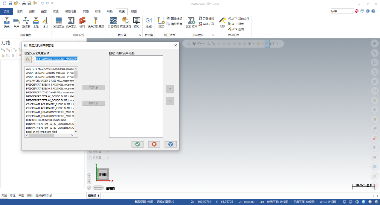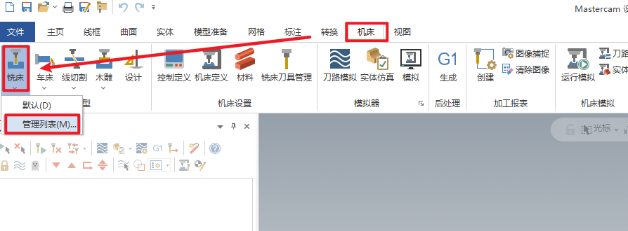 18.打开软件后,依次点击“机床——铣床——管理列表”