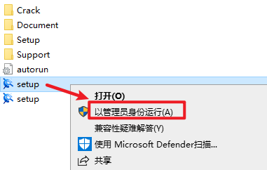 2.打开刚刚解压的文件夹,选中“setup”文件,右键选择 “以管理员身份运行”