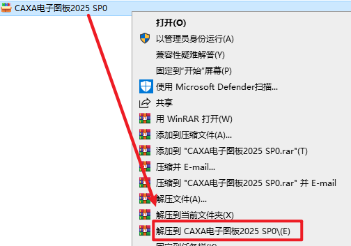 1.选中下载的压缩包,然后右键选择解压到“CAXACAD2025 SP0”