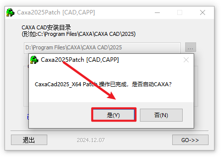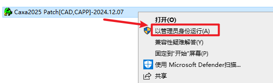 9.返回安装文件夹,双击打开“Crack”文件夹,选中“Caxa2025 Patch[CAD,CAPP]-2024.12.07”右键选择“以管理员身份运行”