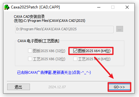10.自动检测勾选”图版2025 x64(64位)“,点击”GO>>”