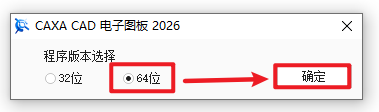 3.根据电脑操作系统位数选择“32位”(32位操作系统)或“64位”(64位操作系统),点击“确定”