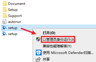 2.打开刚刚解压的文件夹,选中“setup”文件,右键选择 “以管理员身份运行”