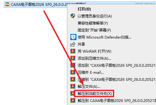 1.选中下载的压缩包,然后右键选择“解压到当前文件夹”