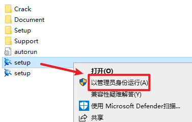 2.打开刚刚解压的文件夹,选中“setup”文件,右键选择“以管理员身份运行”