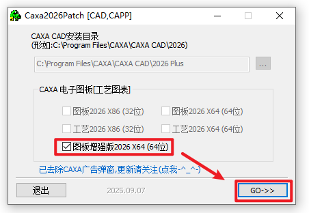 9.自动检测勾选”图版增强版2026 x64(64位)“,点击”GO>>”