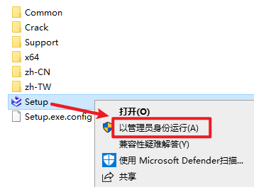 2.打开刚刚解压的文件夹,找到并选中“Setup”右键选择“以管理员身份运行”
