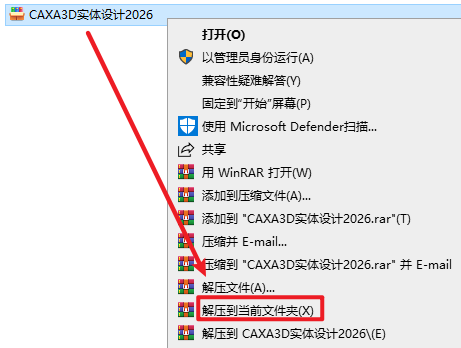1.选中下载的压缩包,然后右键选择”解压到当前文件夹“