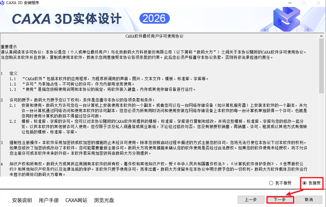 4.点击“我接受”,点击“下一步”