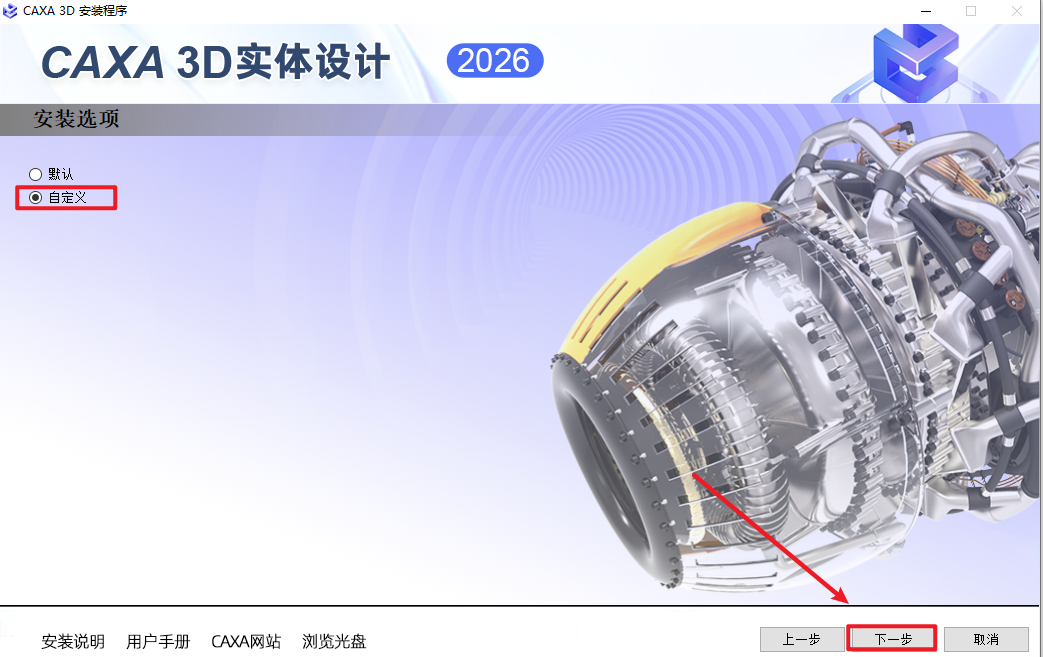 6.点击“自定义”,点击“下一步”