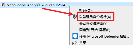 2.打开解压好的文件夹,选中“Nanoscope Analysis x86….“文件,右击选择“以管理员身份运行”