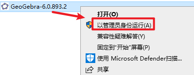 2.打开刚刚解压的文件夹,选中“GeoGebra-6.0.893.2”,右键选择“以管理员身份运行”