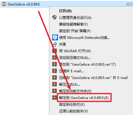 1.选中下载的压缩包,然后右键选择“解压到当前文件夹 GeoGebra-6.0.893”