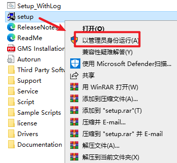 6.返回上一文件夹,找到并选中“setup”,右键选择“以管理员身份运行”