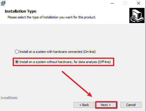 10.选择“Install on a system without hardware, for data analysis (Off-line)”,点击“Next”