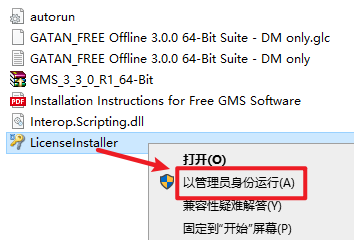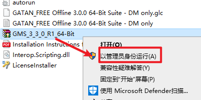 4.返回安装文件夹,选中“GMS_3_3_0_R1_64-Bit ”,右键选择“以管理员身份运行”