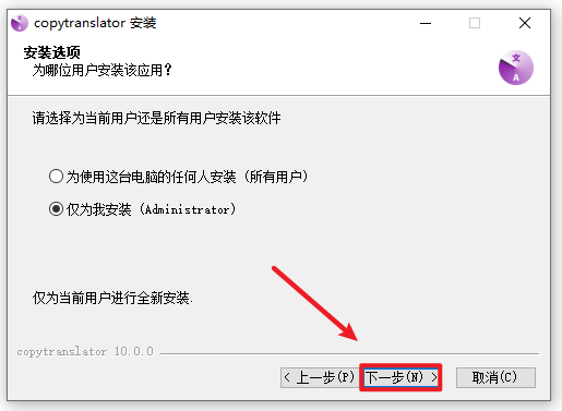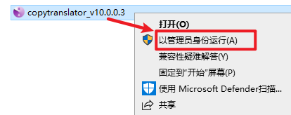 2.打开刚刚解压的文件夹,选中“copytranslator_v10.0.0.3”右键选择“以管理员身份运行”