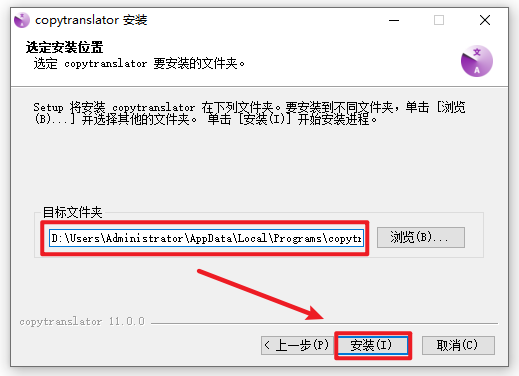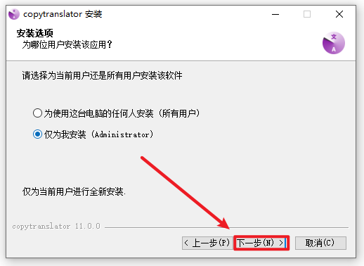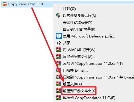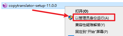 2.打开刚刚解压的文件夹,鼠选中“copytranslator-setup-11.0.0”右键选择“以管理员身份运行”