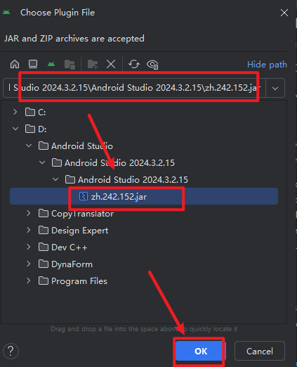 24.选择解压的安装包路径位置,选中安装包中的“zh.242.152.jar”文件,点击“OK”