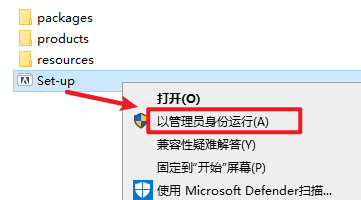 2.找到并选中Set-up,右键选择“以管理员身份运行”