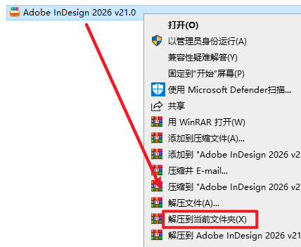 1.选中下载好的安装包,右键选择“解压到当前文件夹”
