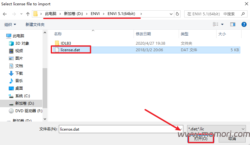 13.找到并打开解压后的安装文件夹,选中“license.dat“文件,点击“打开“