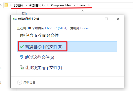 20.粘贴复制的文件到该路径下,选择“替换目标中的文件”