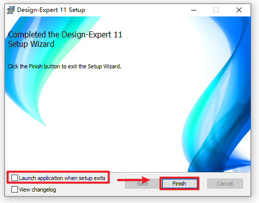 7.取消勾选“Launch application when setup exits”,点击“Finish”