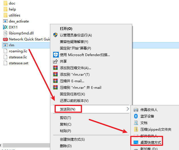 11.找到复制过来的“rlm.exe”文件,右键选择“发送到——桌面快捷方式”