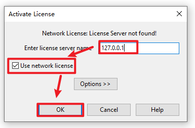 16.勾选“Use network licensei”,输入:127.0.0.1,点击“OK”