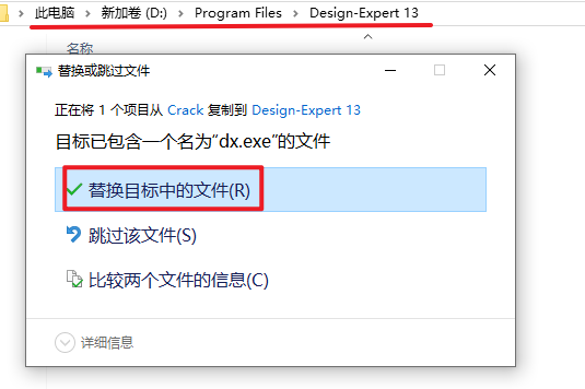 10.粘贴复制的文件到该路径下,选择“替换目标中的文件”