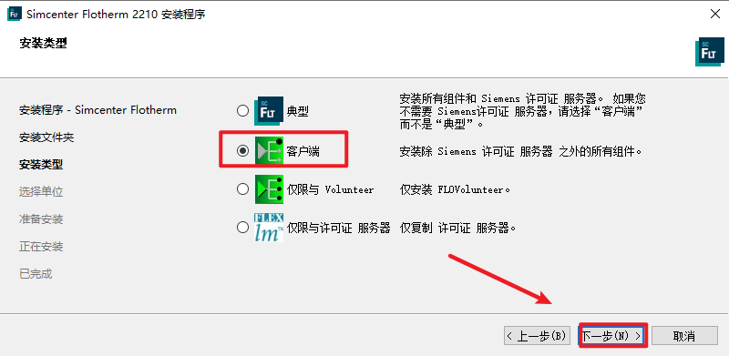 5.勾选“客户端”,点击“下一步”