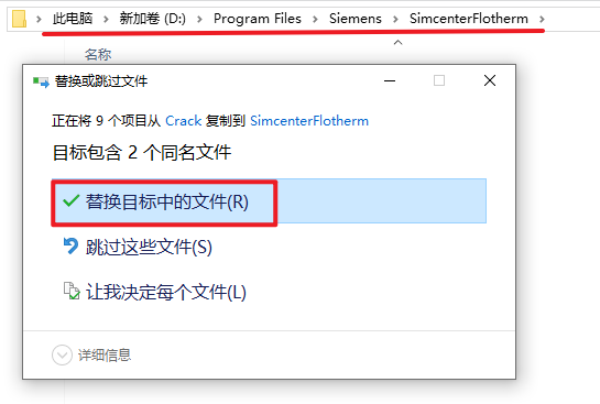 14.粘贴复制的文件到该路径下,选择“替换目标中的文件”
