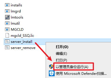 17.完成粘贴操作之后,双击打开复制过来的“Mentor_License_Server_11.16_x64”文件夹,选中“server_install.bat”右键选择“以管理员身份运行”