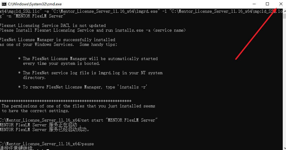 18.提示“服务已经启动成功“,点击右上角的关闭