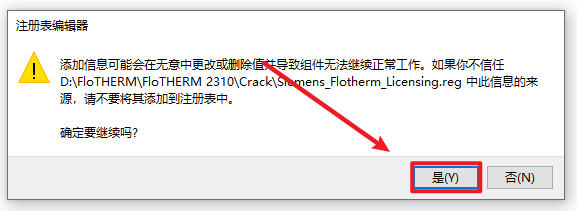 16.再次返回“Crack”文件夹,双击“Siemens_Flotherm_Licensing.reg”注册表文件