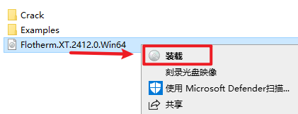 2.打开刚刚解压的文件夹,选中“Flotherm.XT.2412.0.Win64”文件,右键选择“装载”(如果没有“装载”选项的可以右键选择“打开方式—Windows资源管理器”打开)