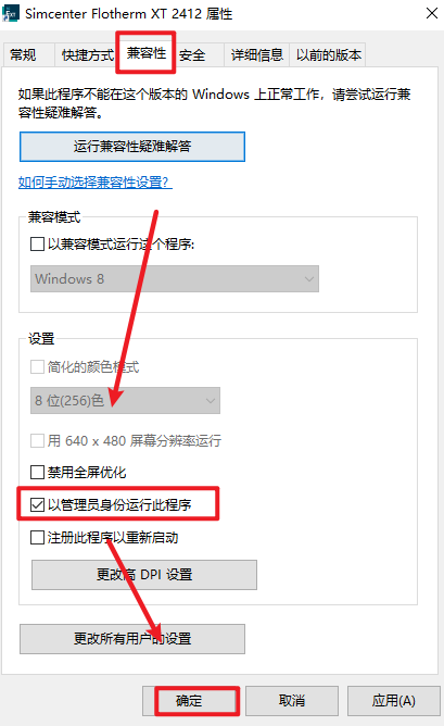 23.点击“兼容性”,勾选“以管理员身份运行此程序”,点击“确定”