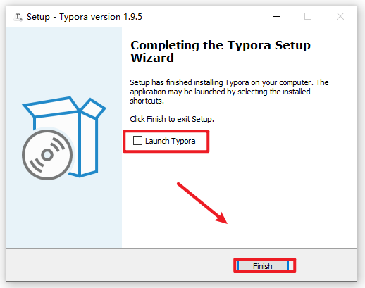 8.取消勾选“Launch Typora“,点击“Finish“