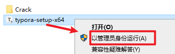 2.打开刚刚解压的文件夹,选中“typora-setup-x64”右键选择“以管理员身份运行”