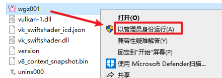 12.选中粘贴过来的“wgz001.exe”文件,右键选择“以管理员身份运行”